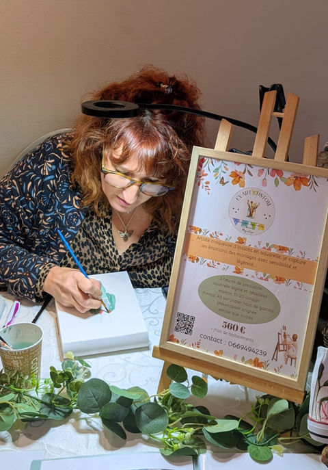 Les croquis de personnes à l'aquarelle lors des mariages et séminaires .